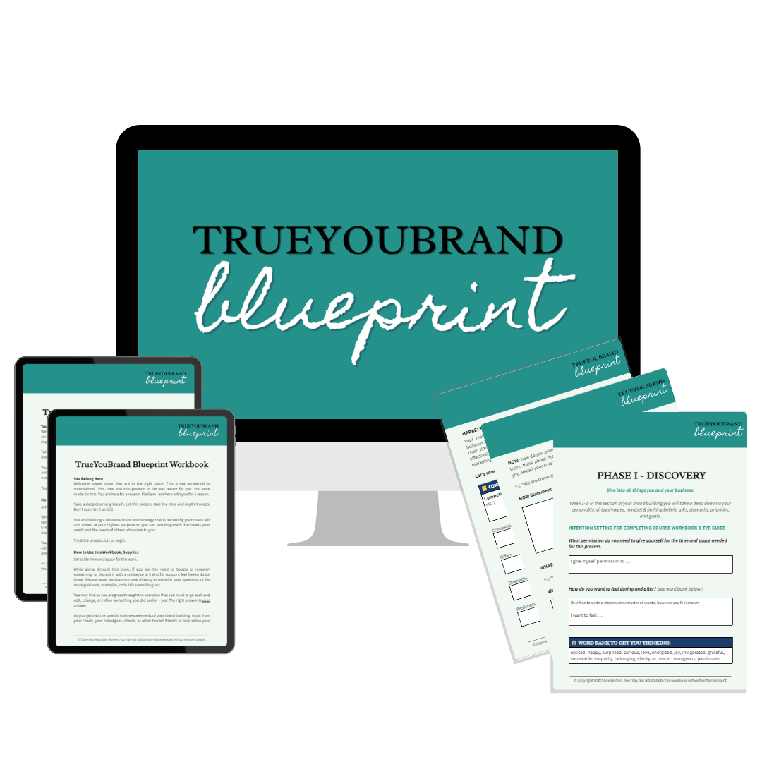 The TrueYouBrand Blueprint includes 12 modules with workbooks to lead you through the 12-week course that culminates in the development of your Authentic Brand Guide and Brand Identity Board.